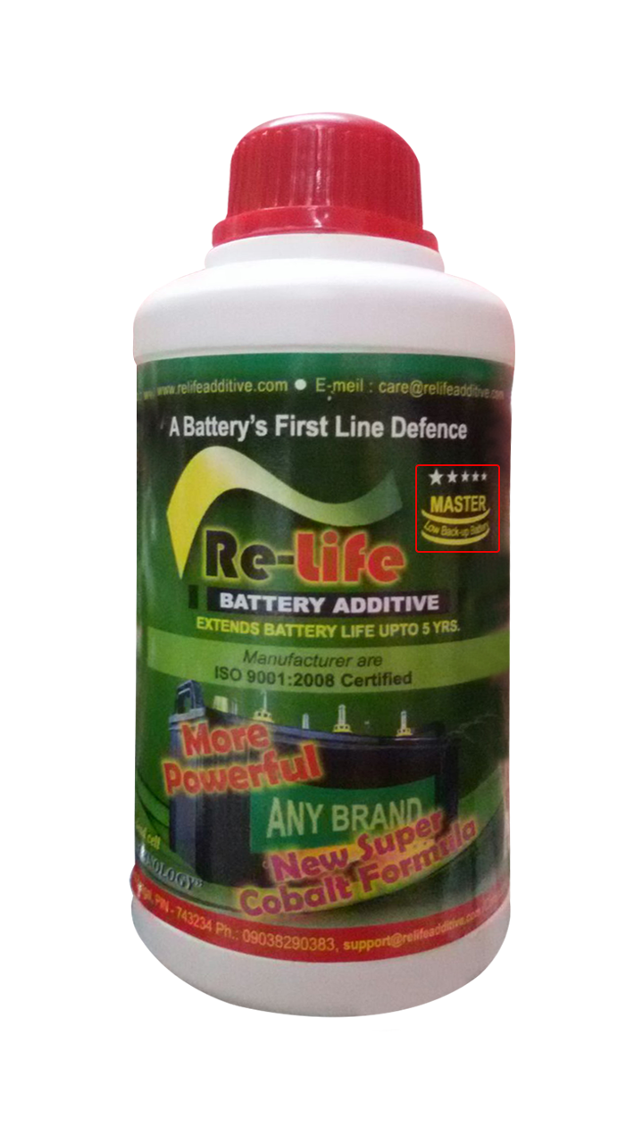 Re Life Battery Additive is a innovative and revolutionary product. It increases the life of your battery by 2-3 years i.e. your battery can lasts for 3-5 years irrespective of 1-2 years depends on the condition of the battery.